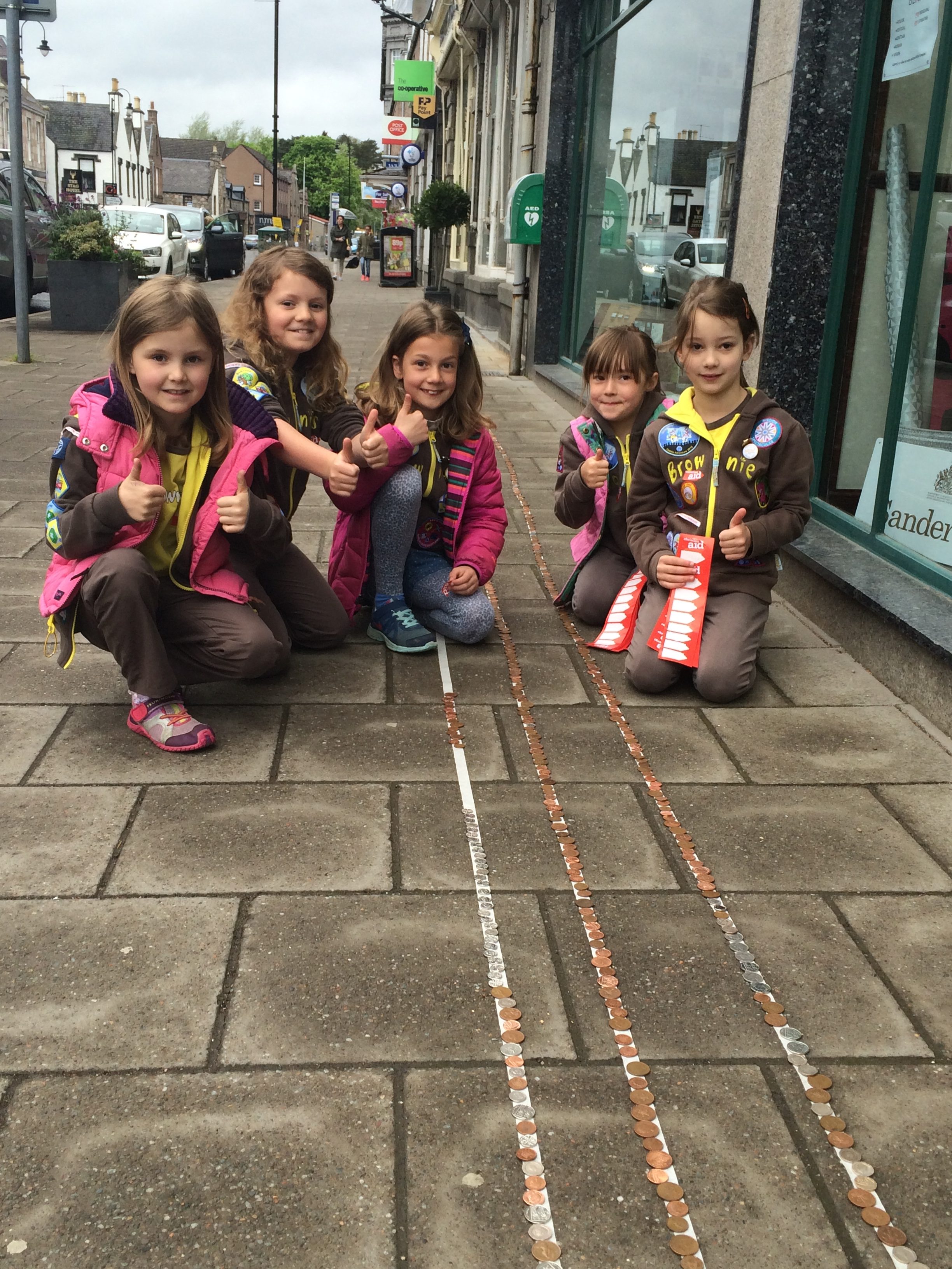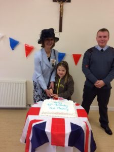 5th Stonehaven Brownie helps Lord Lieutenant cut the cake
